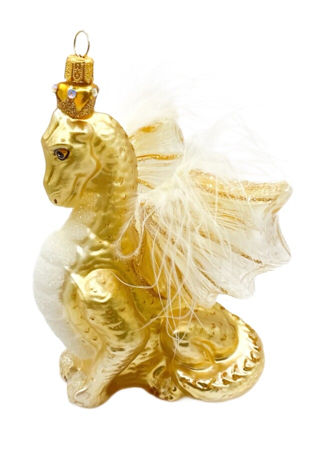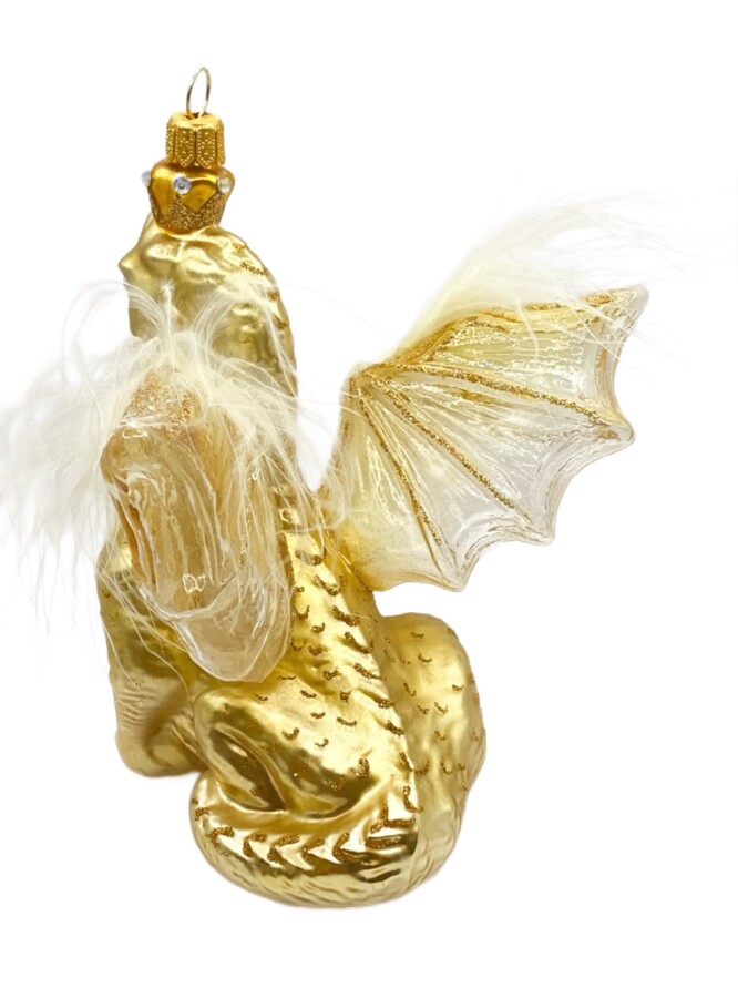 Dieser prachtvoller goldene Drache ist mehr als nur eine Weihnachtskugel-er ist ein Symbol alter Legenden und die Krönung jeder festlichen dekoration.