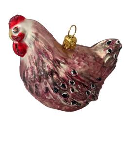 Christbaumschmuck Henne rosa aus Glas – handbemalt & mundgeblasen Weihnachtsanhänger Bauernhof Stil