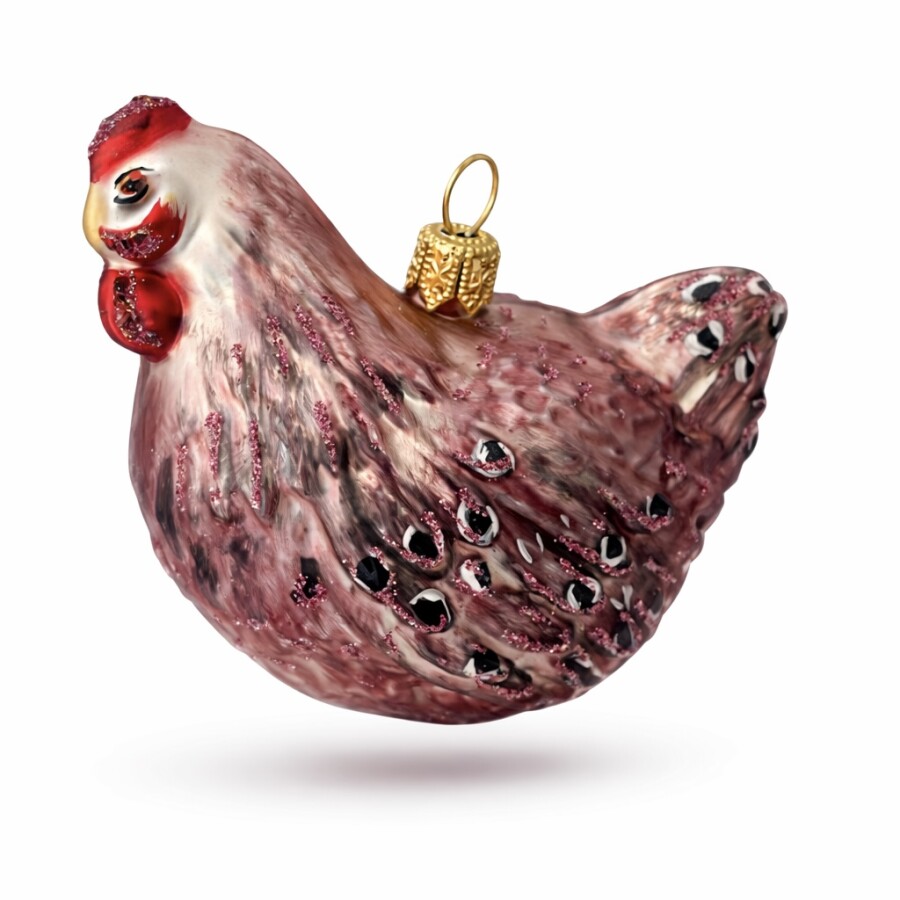Die detailreiche Gestaltung bringt eine gemütliche Bauernhof-Atmosphäre in deine Weihnachtsdekoration und macht die Glas-Henne zu einem besonderen Highlight – ideal für alle, die natürliche und außergewöhnliche Motive lieben. Die glänzende Oberfläche und die sorgfältige Bemalung sorgen für eine hochwertige und lebendige Optik.
