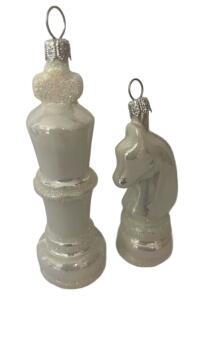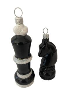 Weihnachtskugel,Schachfiguren in Schwarz mit Silberglitter (Mundgeblasen & Handbemalt)