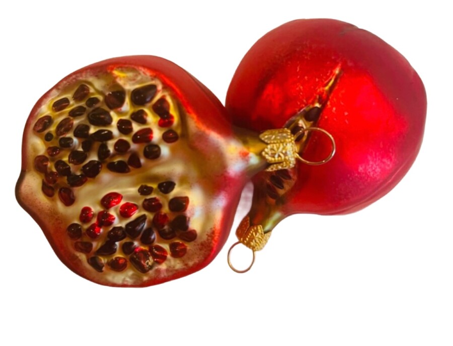 2 Granatapfel-Hälften, Christbaumkugel, Weinachten,Obst und Gemüse
