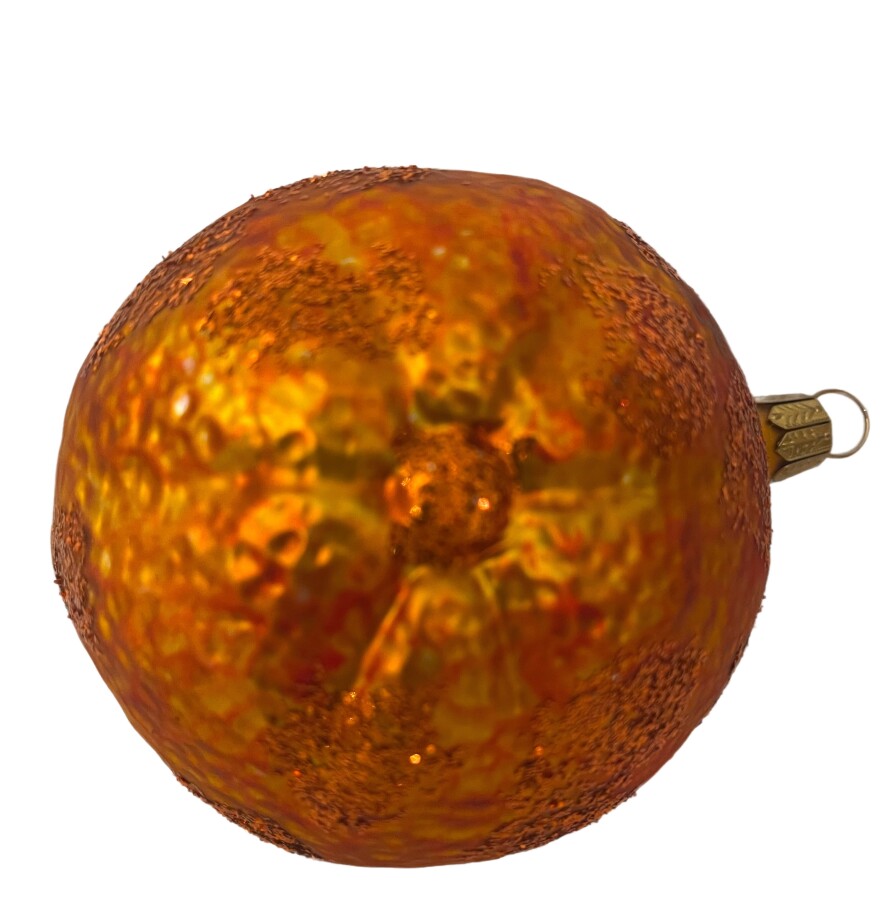 Halbe Orange, Weihnachtskugel, mundgeblasen, handbemalt, Christbaumschmuck aus Glas