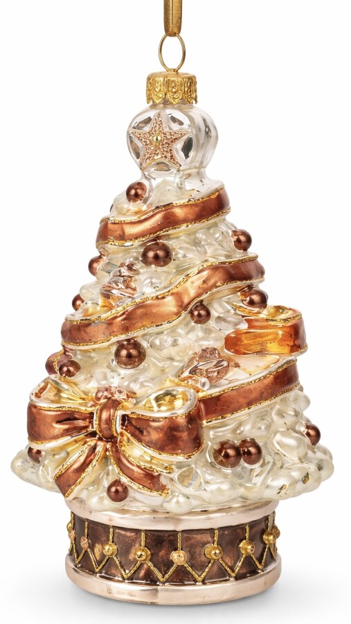 Dieser kunstvoll gestaltete Weihnachtsbaum überzeugt durch seine edle Ausstrahlung und die harmonische Kombination aus warmen Farbnuancen und feinen Details. Die filigranen Verzierungen, glänzenden Akzente und die liebevolle Gestaltung verleihen diesem Ornament eine besonders stilvolle und festliche Wirkung.
