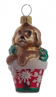 Süßer Hund im Blumentopf-Christbaumschmuck aus Glas