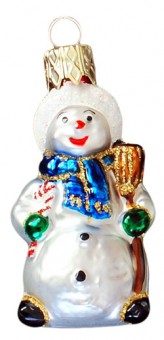 Mini Schneemann mit Besen, Weihnachtskugel Schneemann, Glasornament