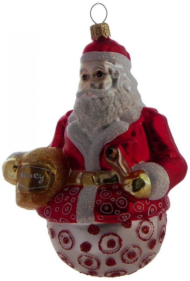 Weihnachtsmann mit Honigfass, Christbaumschmuck aus Glas